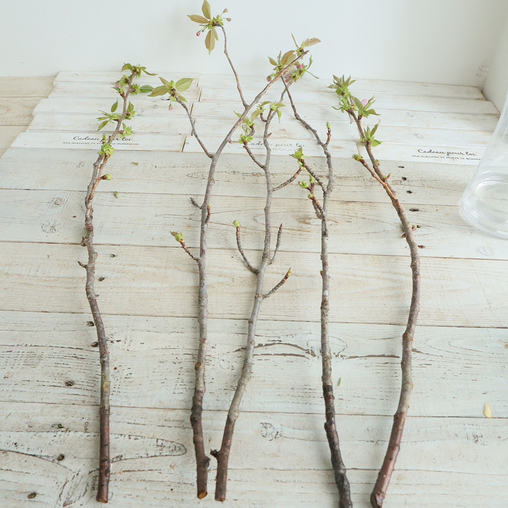 八重桜は、啓翁桜などと比べて、花芽の数が少ない品種が多いです。