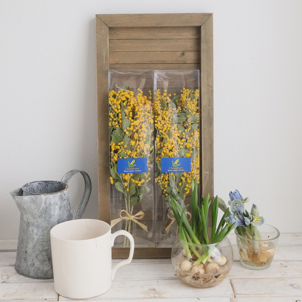即日★【ドライ】J・flow/長作園の真珠葉ミモザアカシア(クリアケース入り)なら花材通販【はなどんやアソシエ】におまかせ!即日発送、送料無料、ポイント還元も。個人法人問わず花材が仕入れられるネット通販です。