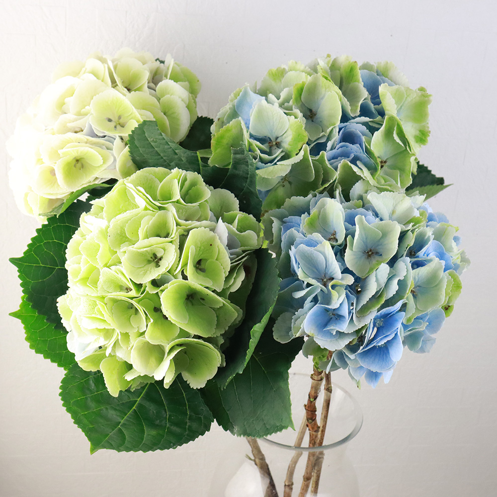 【08直前】青木園芸 アジサイ アンティークブルー〜グリーン系 中サイズ※画像はイメージです。なら花材通販【はなどんやアソシエ】におまかせ!即日発送、送料無料、ポイント還元も。個人法人問わず花材が仕入れられるネット通販です。