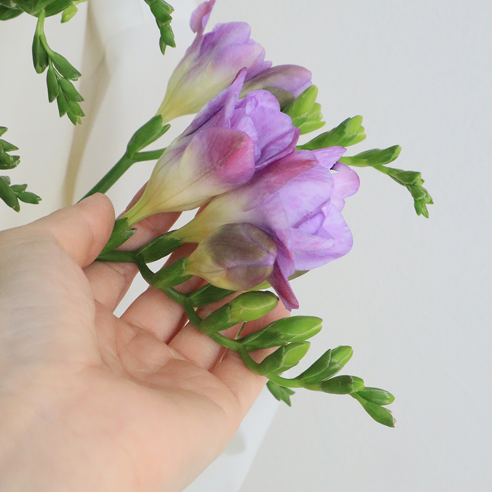 【08直前!】高成園のフリージア アネシー(八重紫)40CMユーロスタイル ※入荷少量なら花材通販【はなどんやアソシエ】におまかせ!即日発送、送料無料、ポイント還元も。個人法人問わず花材が仕入れられるネット通販です。