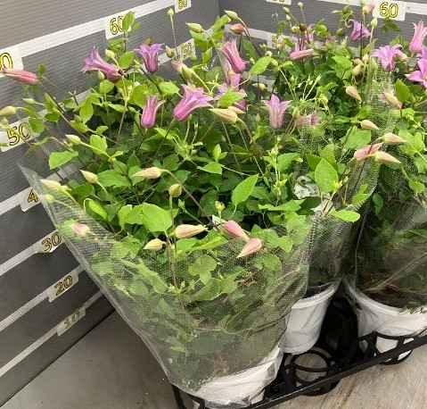 【送料無料】鉢物クレマチス◆ミニベル (ベル咲きピンクラベンダー)6号※同梱不可 ※遠方のみ送料加算有り ■母の日鉢もの特集なら花材通販【はなどんやアソシエ】におまかせ!即日発送、送料無料、ポイント還元も。個人法人問わず花材が仕入れられるネット通販です。