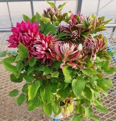 【送料無料】鉢物クレマチス◆花炎(かえん)赤八重咲き)※同梱不可 ※遠方のみ送料加算有り ■母の日鉢もの特集なら花材通販【はなどんやアソシエ】におまかせ!即日発送、送料無料、ポイント還元も。個人法人問わず花材が仕入れられるネット通販です。