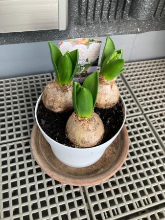 【生花/即納】芽出しヒヤシンス 白(3球) 4寸鉢 ※ホワイトパールなどなら花材通販【はなどんやアソシエ】におまかせ!即日発送、送料無料、ポイント還元も。個人法人問わず花材が仕入れられるネット通販です。