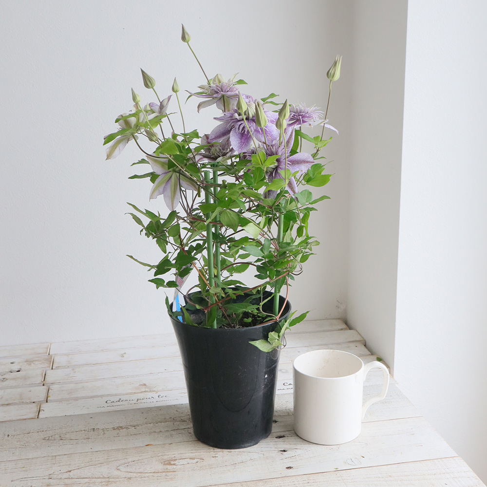 【生花/即納】鉢物クレマチス◆水面の妖精5寸(薄紫・アンティーク系※同梱不可なら花材通販【はなどんやアソシエ】におまかせ!即日発送、送料無料、ポイント還元も。個人法人問わず花材が仕入れられるネット通販です。