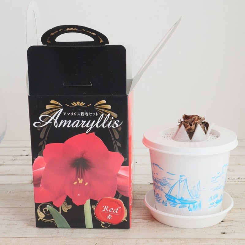 【生花/即納】アマリリスギフトBOX 栽培セット 赤【NA】なら花材通販【はなどんやアソシエ】におまかせ!即日発送、送料無料、ポイント還元も。個人法人問わず花材が仕入れられるネット通販です。