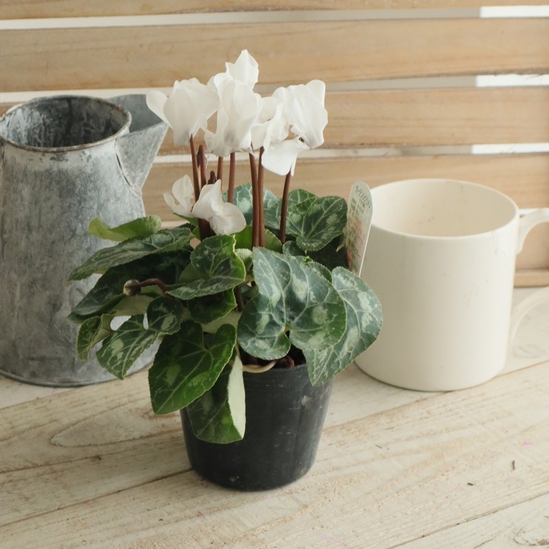 【生花/即納】ガーデンシクラメン(白)3寸【NS】なら花材通販【はなどんやアソシエ】におまかせ!即日発送、送料無料、ポイント還元も。個人法人問わず花材が仕入れられるネット通販です。