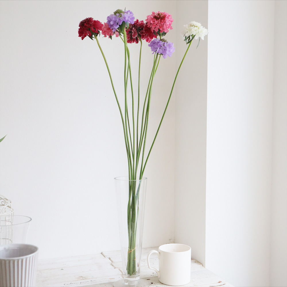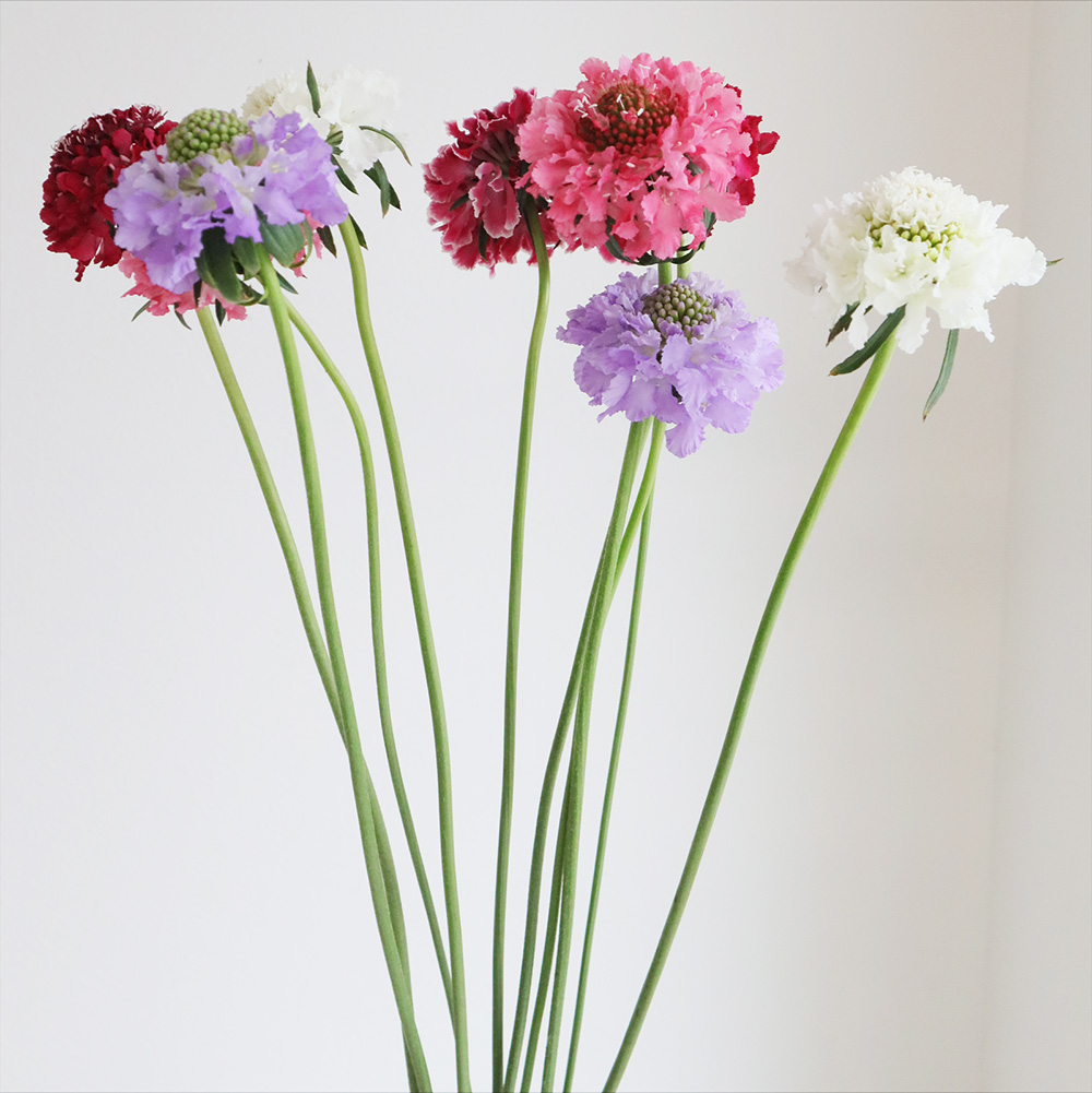 【生花】金井園芸 ロングスカビオサ スクープミックス 70cm【早締切-22】なら花材通販【はなどんやアソシエ】におまかせ!即日発送、送料無料、ポイント還元も。個人法人問わず花材が仕入れられるネット通販です。
