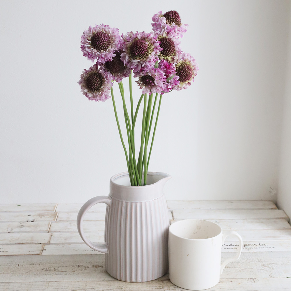 【08直前】スカビオサ ブルーベリーパフェ(紫系) 50cm 青木園芸なら花材通販【はなどんやアソシエ】におまかせ!即日発送、送料無料、ポイント還元も。個人法人問わず花材が仕入れられるネット通販です。