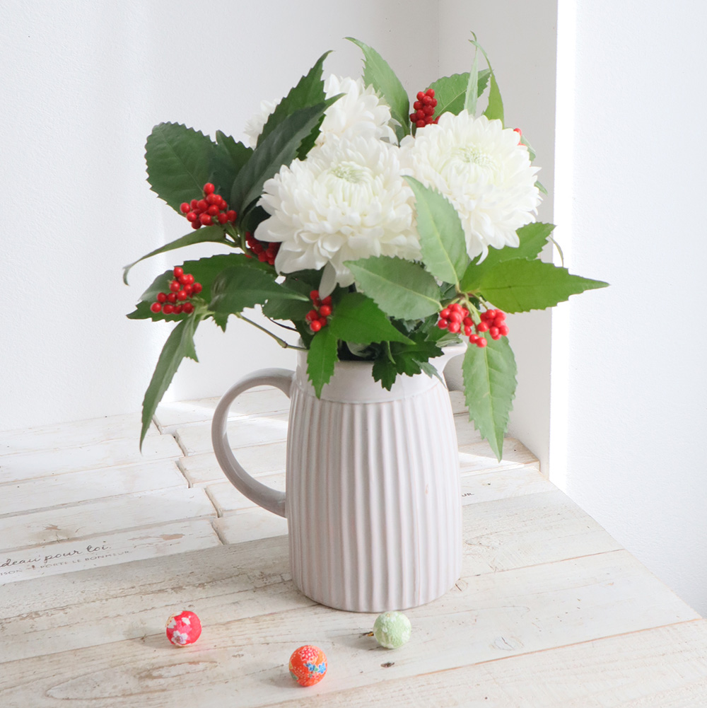 【生花 】紅白プチお正月セット<千両&白マム>なら花材通販【はなどんやアソシエ】におまかせ!即日発送、送料無料、ポイント還元も。個人法人問わず花材が仕入れられるネット通販です。
