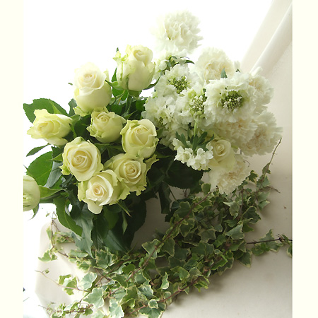 【生花】バラとカーネのアンサンブルセット!(白〜グリーン系)なら花材通販【はなどんやアソシエ】におまかせ!即日発送、送料無料、ポイント還元も。個人法人問わず花材が仕入れられるネット通販です。