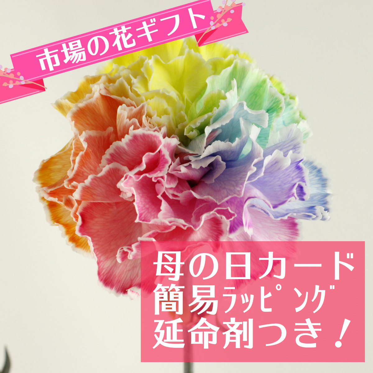 【生花】母の日簡易ラッピング付き◆国産レインボーカーネーション 10本 ◇【早締切-75】なら花材通販【はなどんやアソシエ】におまかせ!即日発送、送料無料、ポイント還元も。個人法人問わず花材が仕入れられるネット通販です。