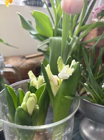 【08直前】球根つき切花ヒヤシンス(白)1カップ3球入り【生花】なら花材通販【はなどんやアソシエ】におまかせ!即日発送、送料無料、ポイント還元も。個人法人問わず花材が仕入れられるネット通販です。