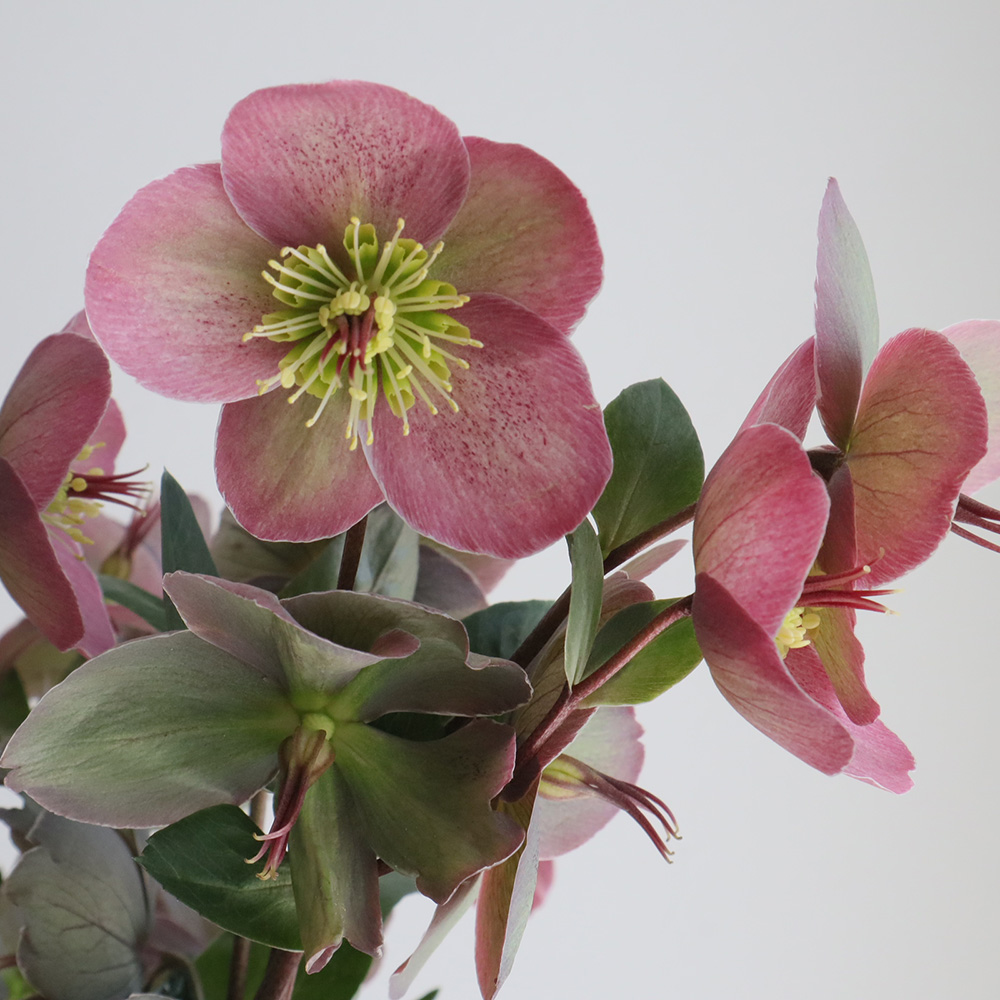 クリスマスローズという名前はクリスマスの頃に咲く原種(ニゲル)の愛称ですが、日本では原種・交配種含めたヘレボルス全体をクリスマスローズと呼んでいます。