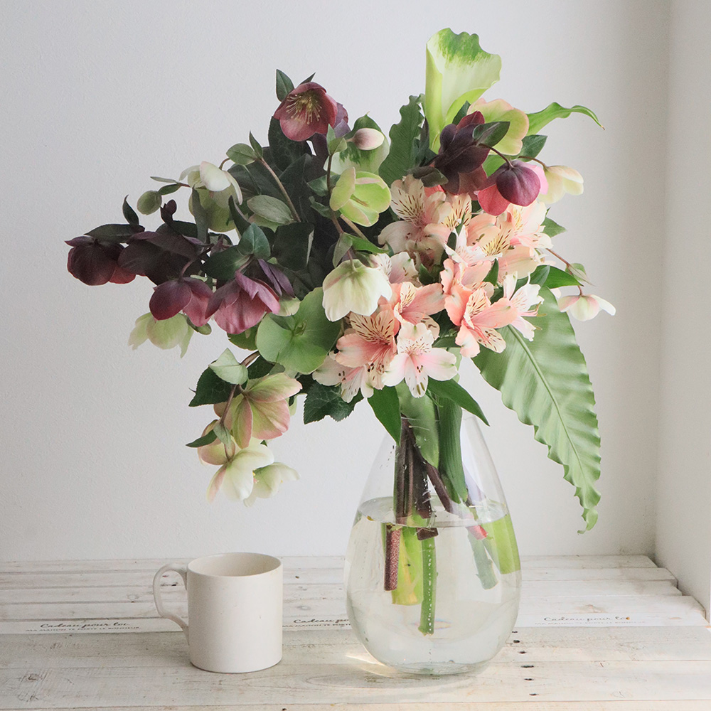 【生花】ヘレボルス ピンキーアン( ダークピンク系)(エクセレント/60cm程度) 長野県【FJ】なら花材通販【はなどんやアソシエ】におまかせ!即日発送、送料無料、ポイント還元も。個人法人問わず花材が仕入れられるネット通販です。