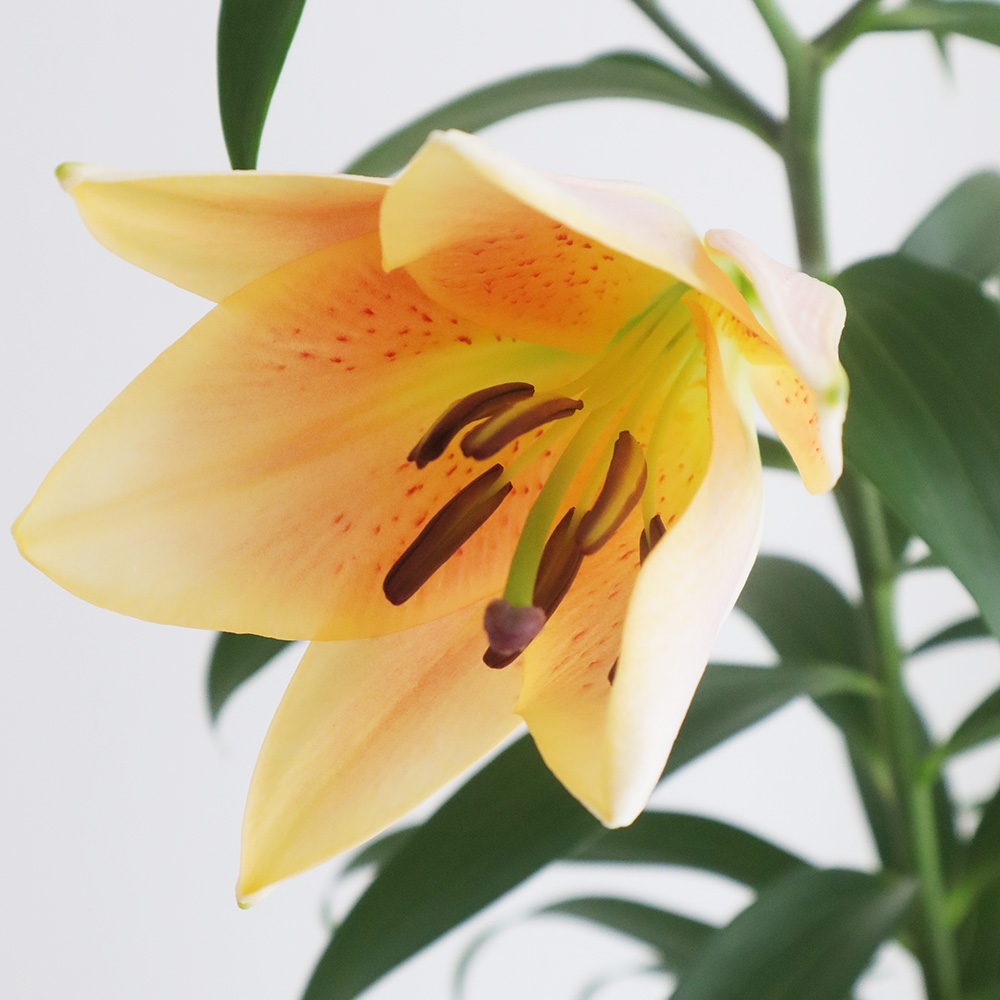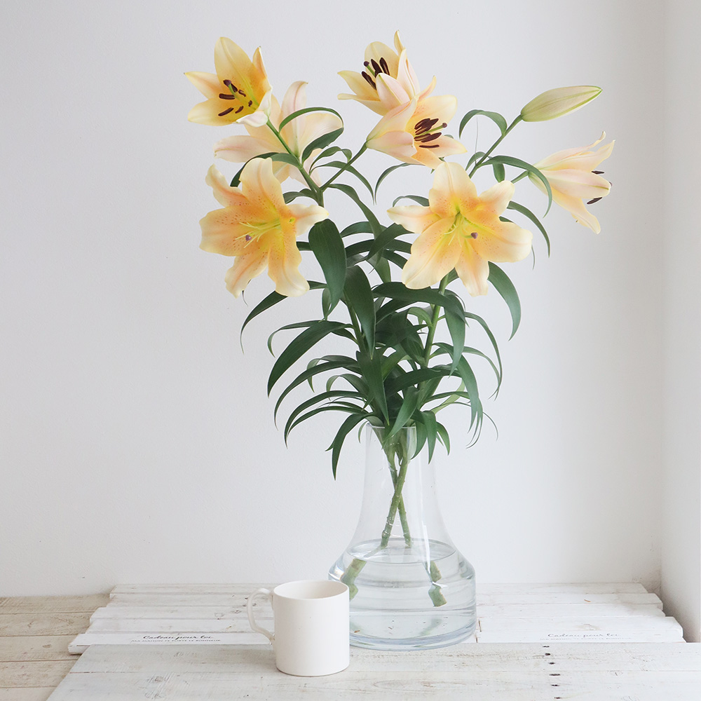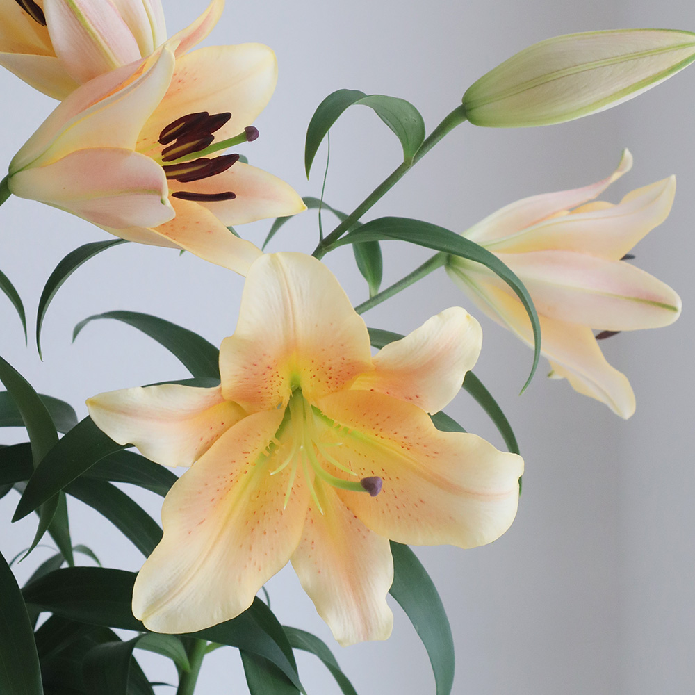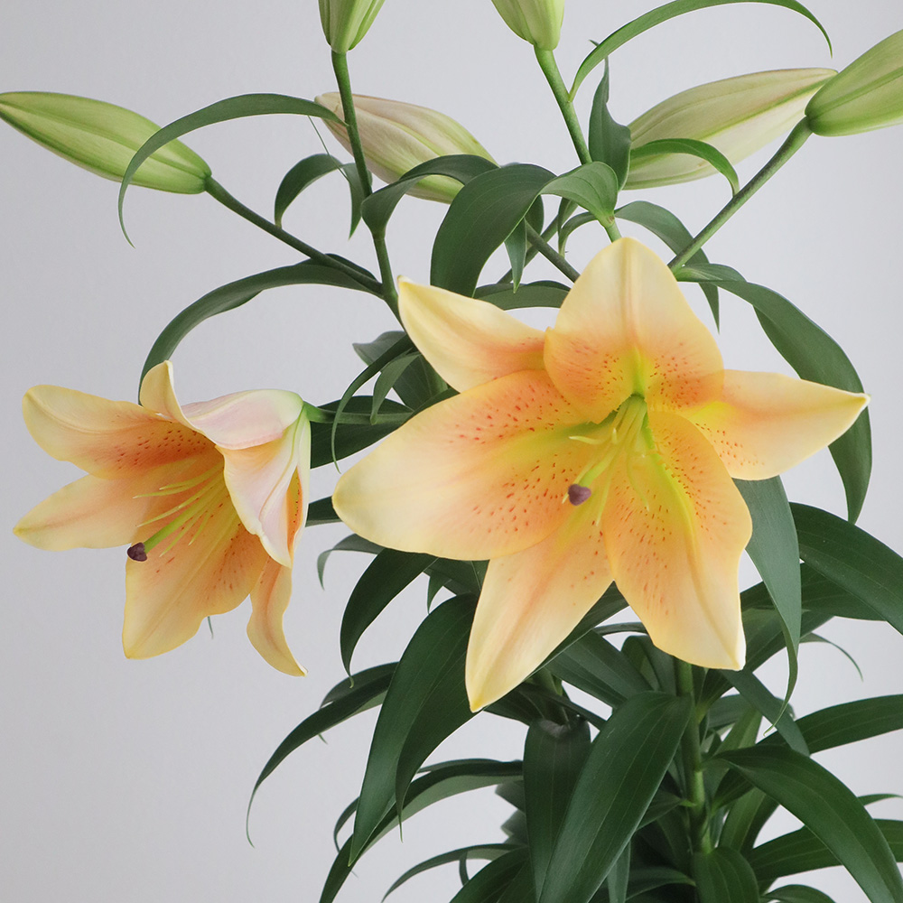 【生花】オリエンタルユリ ゼルミラ(アプリコット)4-5F 90cm FFヒライデ【OT】新潟県ほかなら花材通販【はなどんやアソシエ】におまかせ!即日発送、送料無料、ポイント還元も。個人法人問わず花材が仕入れられるネット通販です。