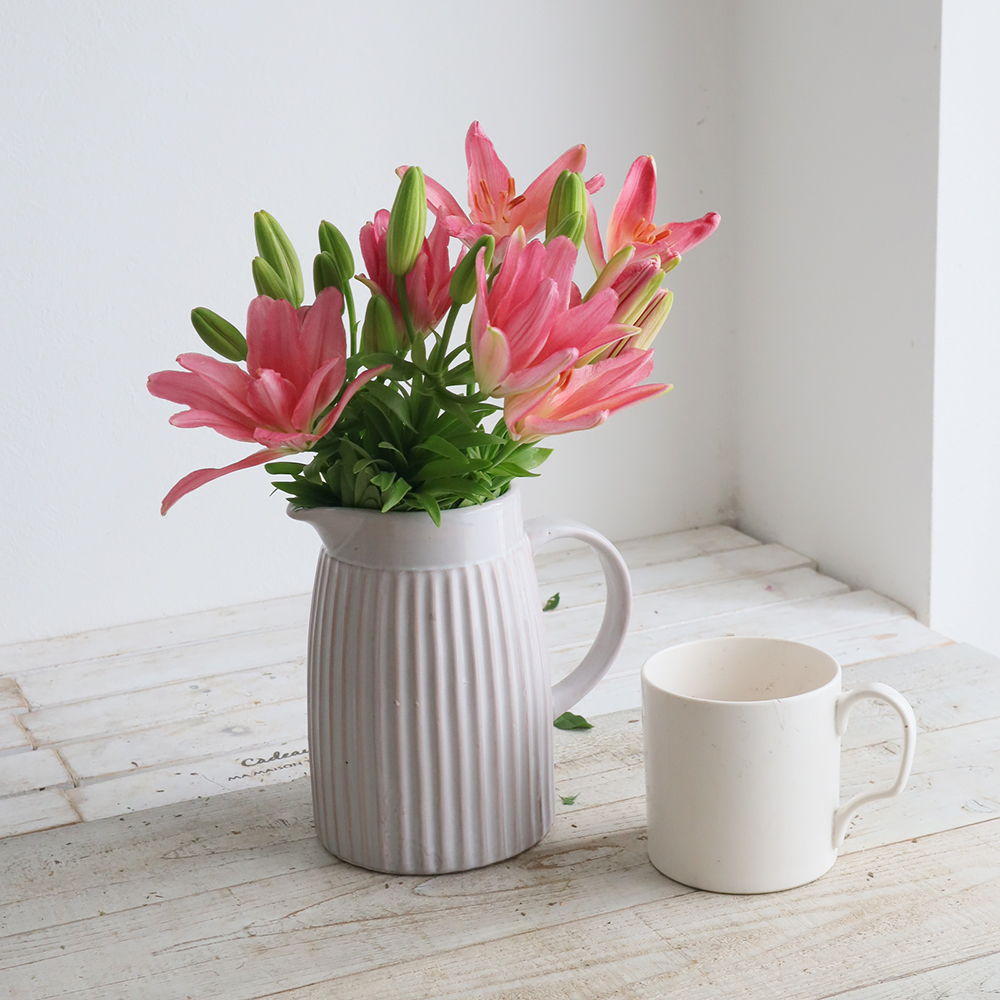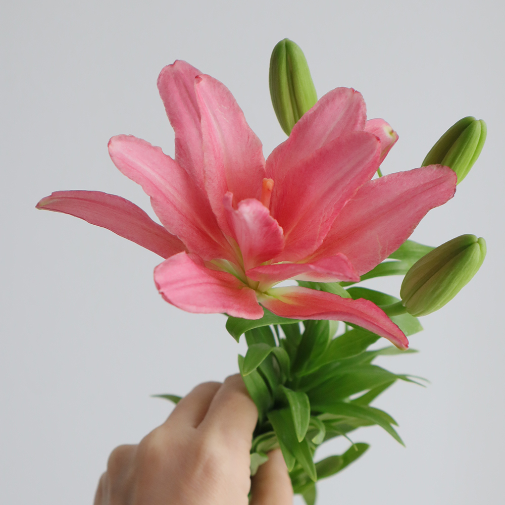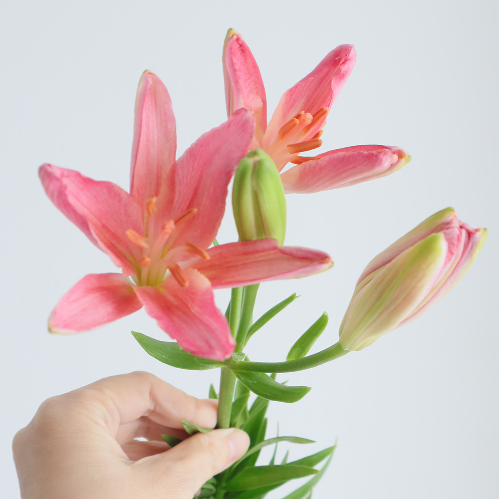 【生花】スカシユリ プラデザート(サーモンピンク系)30cm程度 今井ユリ園【OT】なら花材通販【はなどんやアソシエ】におまかせ!即日発送、送料無料、ポイント還元も。個人法人問わず花材が仕入れられるネット通販です。