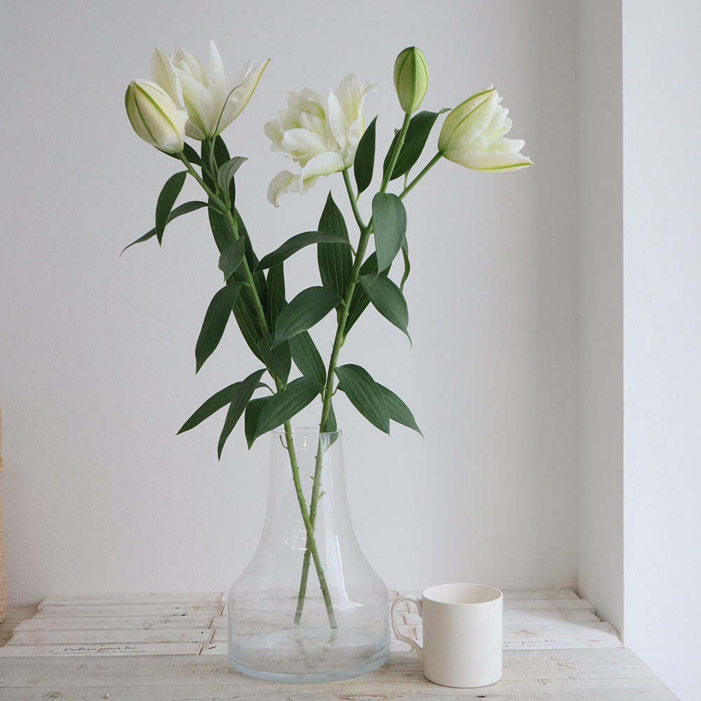 【生花】オリエンタルユリ スノーピーク 3輪80cm- (八重白)FFヒライデ【OT】なら花材通販【はなどんやアソシエ】におまかせ!即日発送、送料無料、ポイント還元も。個人法人問わず花材が仕入れられるネット通販です。
