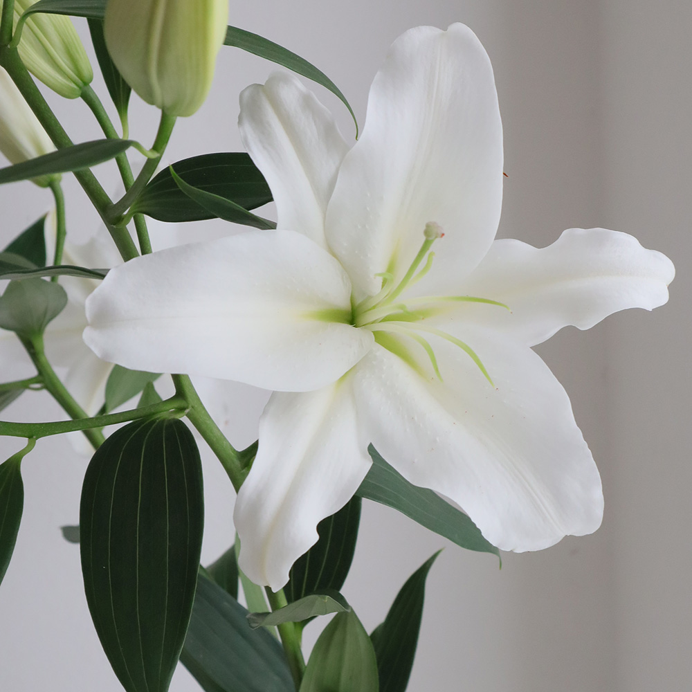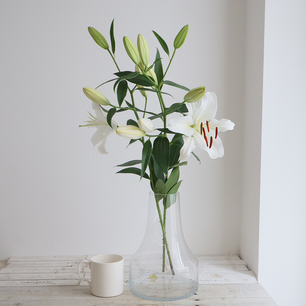 【生花】オリエンタルユリ モンテニュー(白)5-6輪90cm FFヒライデ【OT】なら花材通販【はなどんやアソシエ】におまかせ!即日発送、送料無料、ポイント還元も。個人法人問わず花材が仕入れられるネット通販です。