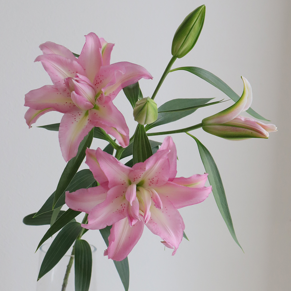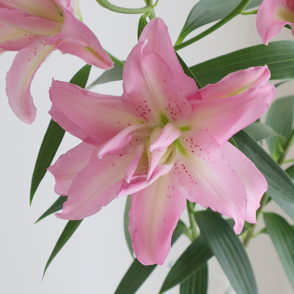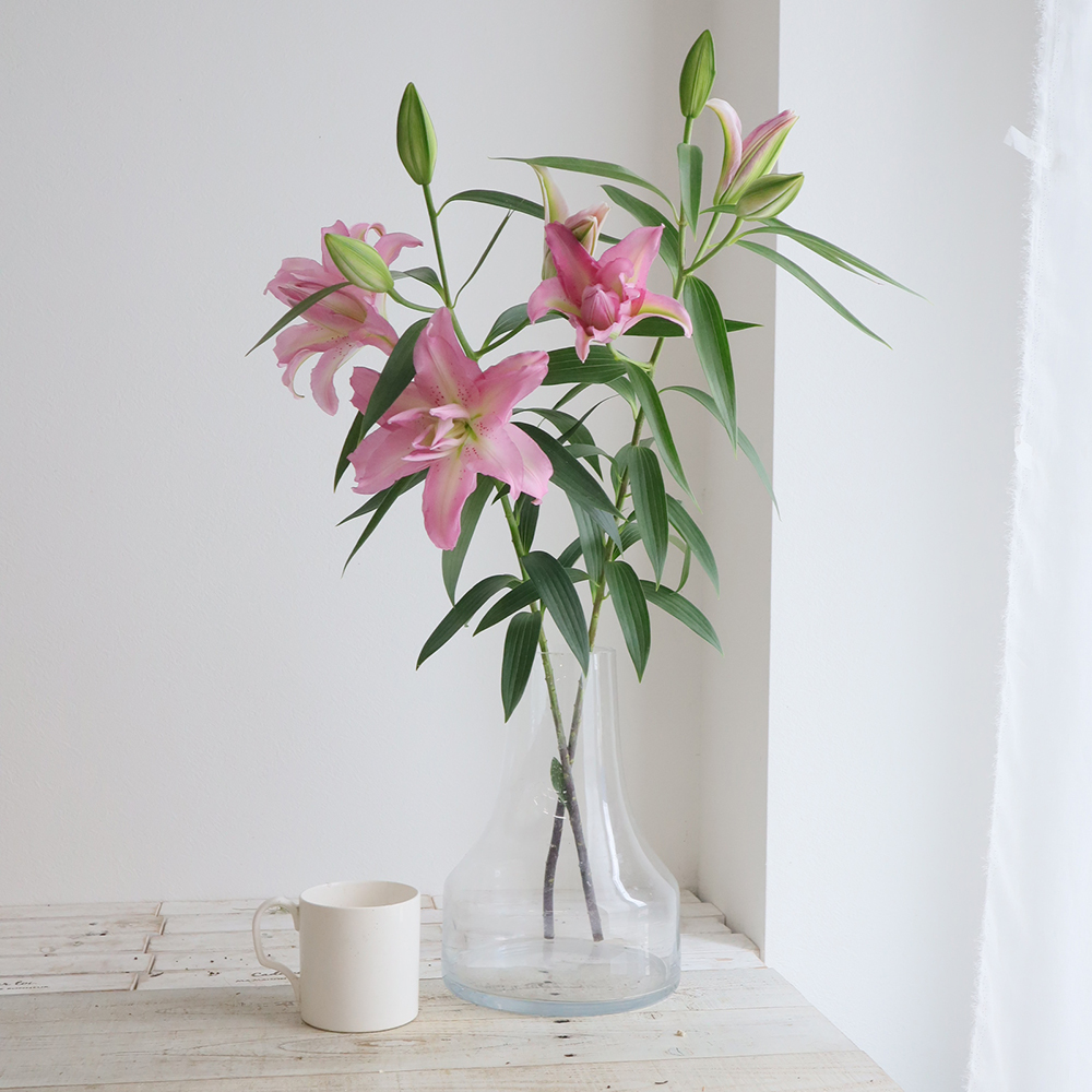 【生花】オリエンタルユリ ジセラ(八重ピンク) 90cm 4-5輪 FFヒライデ【OT】なら花材通販【はなどんやアソシエ】におまかせ!即日発送、送料無料、ポイント還元も。個人法人問わず花材が仕入れられるネット通販です。