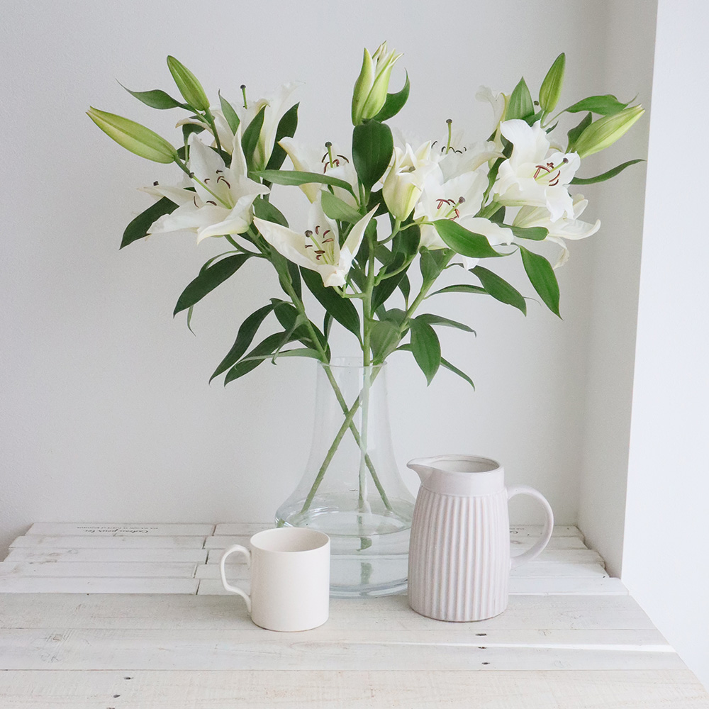 【直前】【生花】オリエンタルユリ プレミアムブロンド(白) 80CM 4-5輪つき FFヒライデ【OT】なら花材通販【はなどんやアソシエ】におまかせ!即日発送、送料無料、ポイント還元も。個人法人問わず花材が仕入れられるネット通販です。