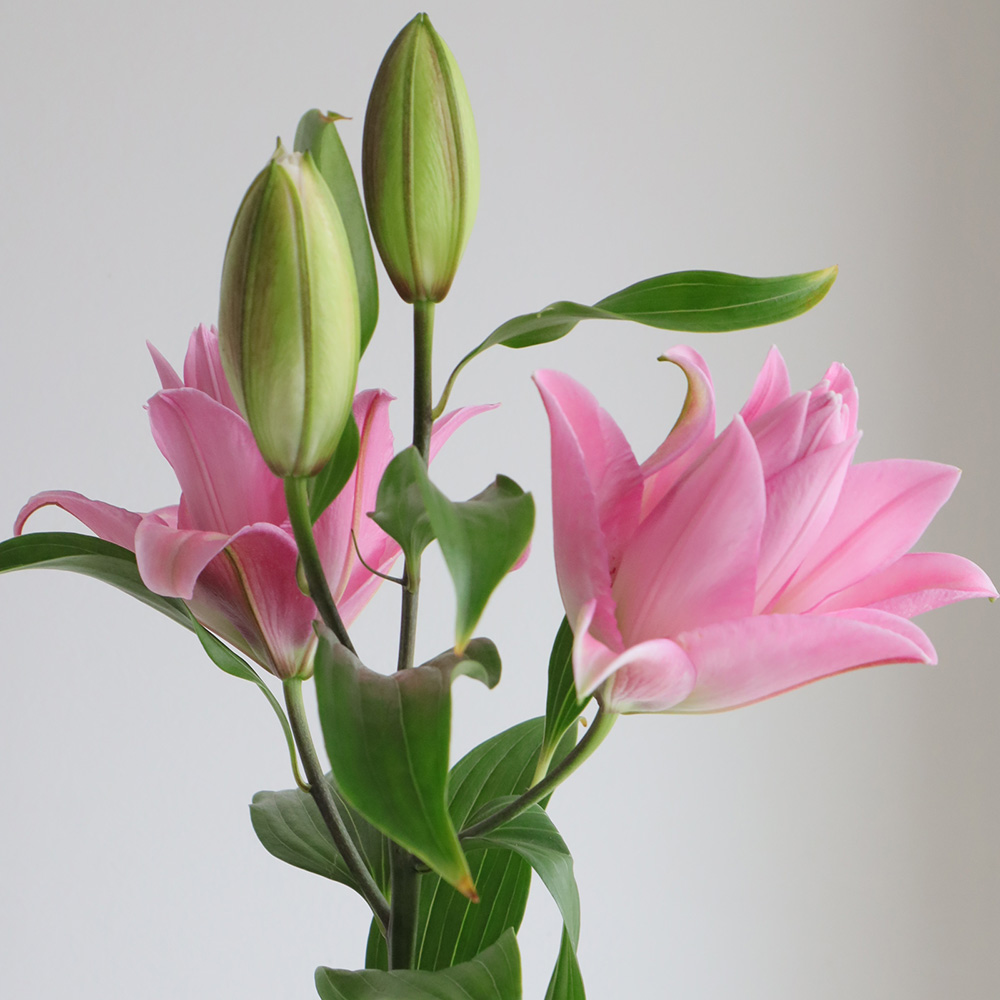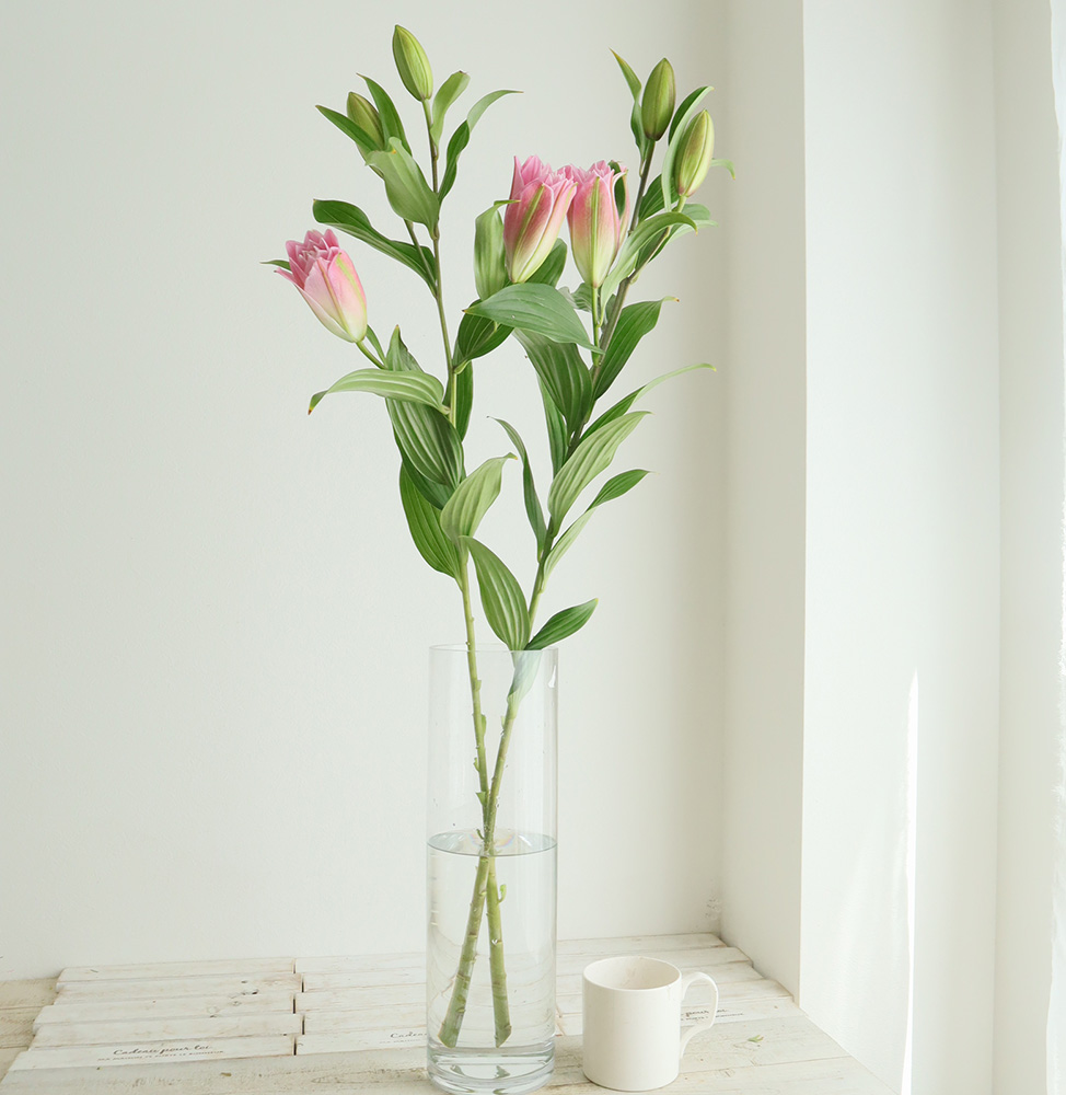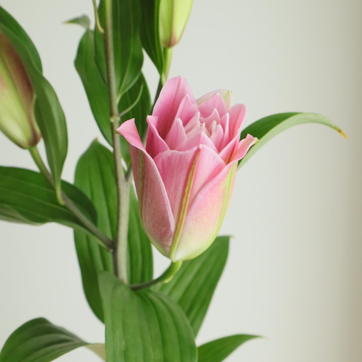 【生花】オリエンタルユリ ラッキーショット(ピンク八重)90cm 5-6輪 FFヒライデ【OT】なら花材通販【はなどんやアソシエ】におまかせ!即日発送、送料無料、ポイント還元も。個人法人問わず花材が仕入れられるネット通販です。