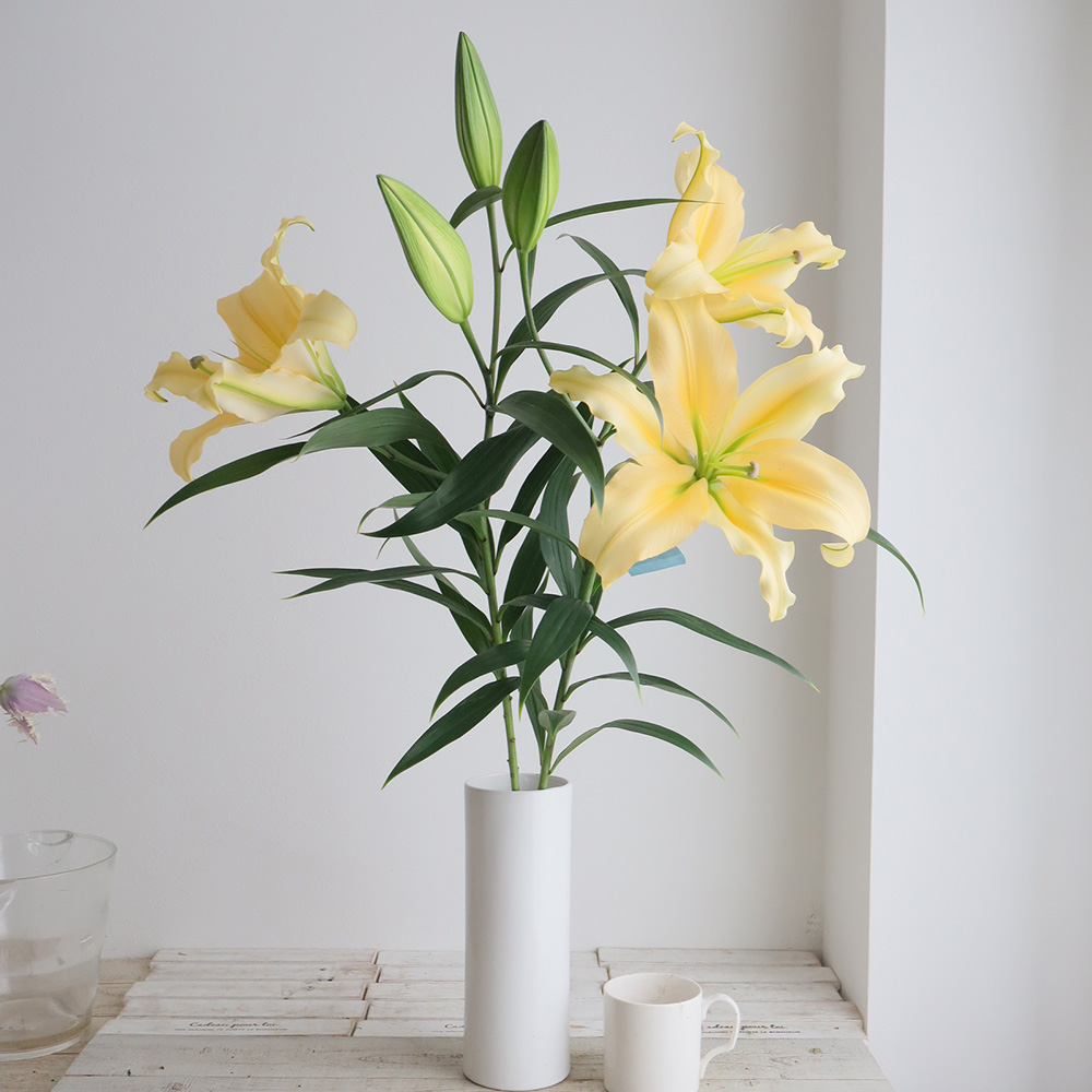 【生花】オリエンタルユリ シャインオン(黄色) 90cm 3-4輪 FFヒライデ【OT】なら花材通販【はなどんやアソシエ】におまかせ!即日発送、送料無料、ポイント還元も。個人法人問わず花材が仕入れられるネット通販です。
