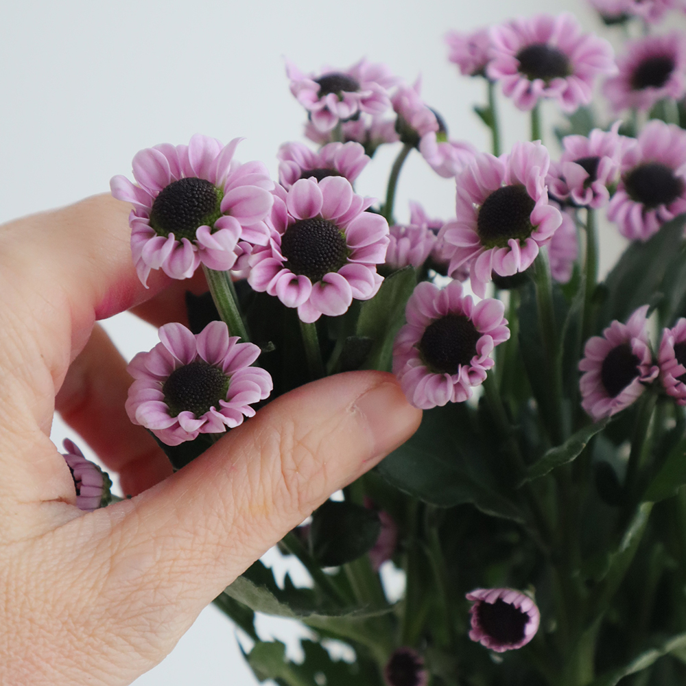 【08直前FJ】小輪SPマム インヤンピンク(ピンク黒目) 秀L 小リン系なら花材通販【はなどんやアソシエ】におまかせ!即日発送、送料無料、ポイント還元も。個人法人問わず花材が仕入れられるネット通販です。