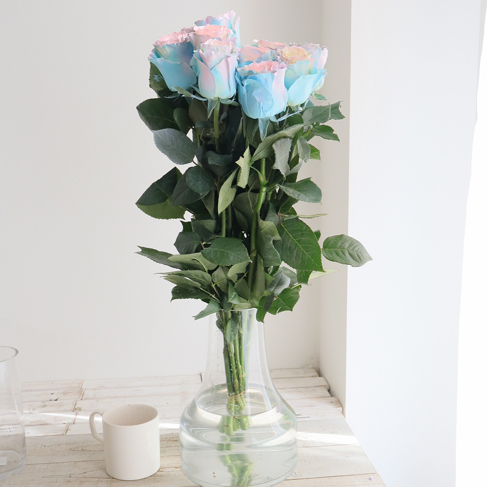 【生花/予約】大輪エクアドルローズ バブルガム(染め水色ピンク)70cm 【早締切】※予約約2週間前なら花材通販【はなどんやアソシエ】におまかせ!即日発送、送料無料、ポイント還元も。個人法人問わず花材が仕入れられるネット通販です。