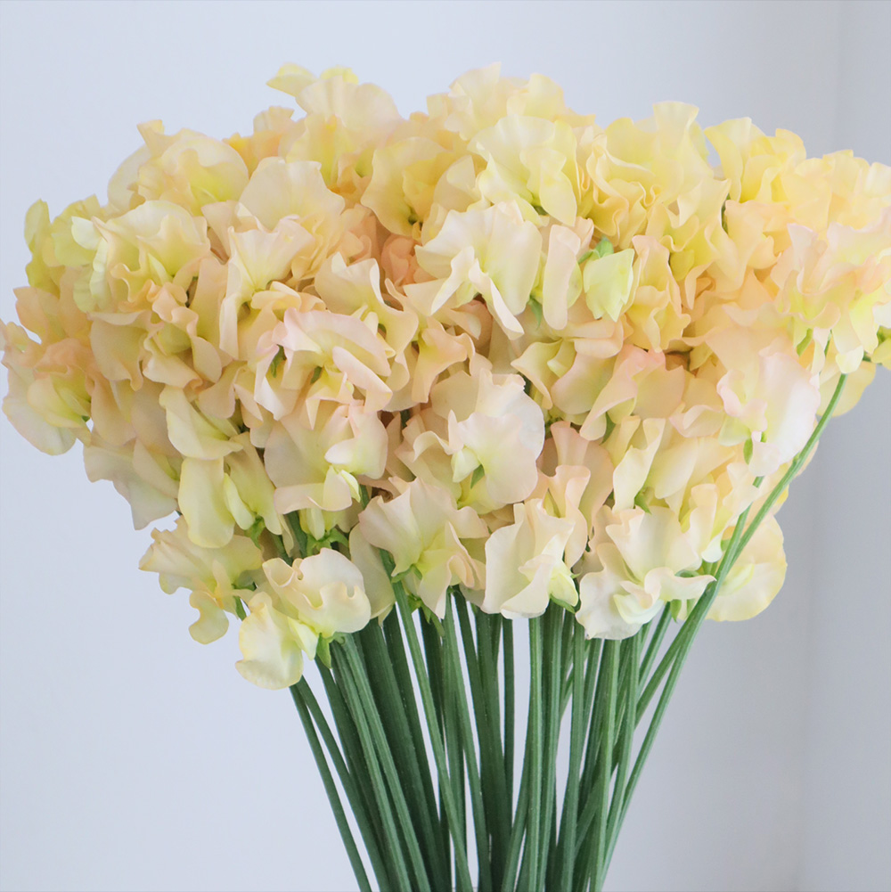 【生花】スイトピー ピーチ(黄-橙染め)松浦農園【早締切-22】なら花材通販【はなどんやアソシエ】におまかせ!即日発送、送料無料、ポイント還元も。個人法人問わず花材が仕入れられるネット通販です。