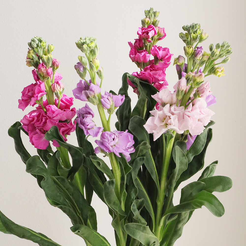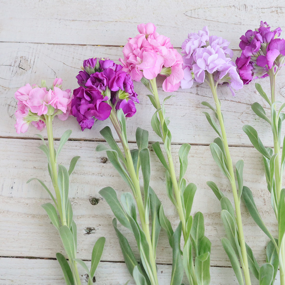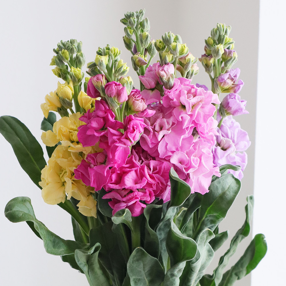 【生花】八重咲き1本立ちストック おまかせミックス そう花園 50cm程度【SUP-54】※木金お届けなしなら花材通販【はなどんやアソシエ】におまかせ!即日発送、送料無料、ポイント還元も。個人法人問わず花材が仕入れられるネット通販です。