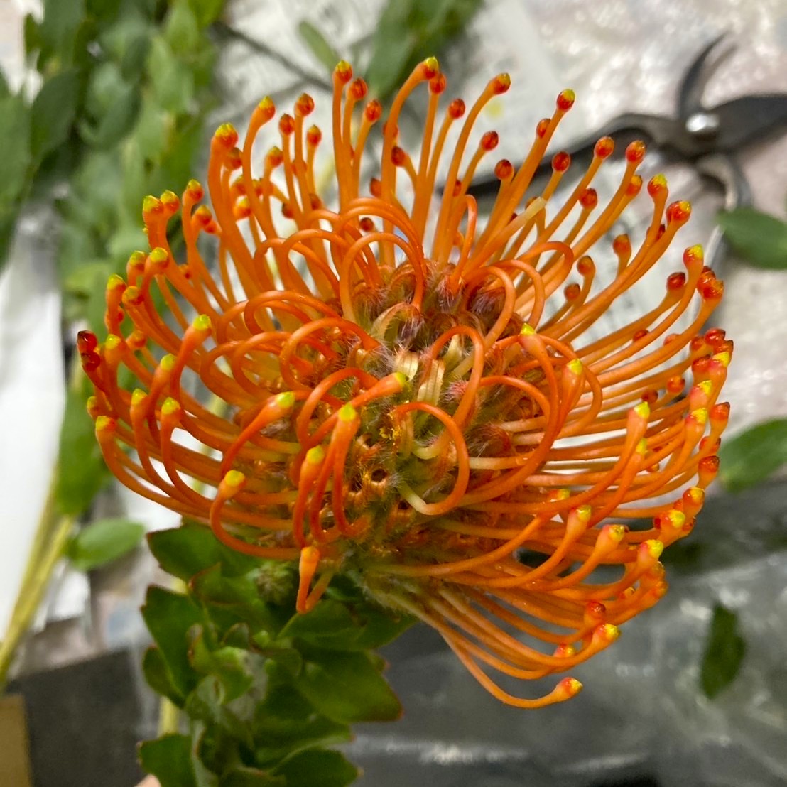 【生花】ピンクッション マンダリンゼスト(濃オレンジ) 50cm 【OR-83】※月曜入荷少・早締切なら花材通販【はなどんやアソシエ】におまかせ!即日発送、送料無料、ポイント還元も。個人法人問わず花材が仕入れられるネット通販です。