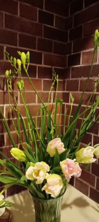 フリージアもチューリップも数日で花開きそうな蕾で届きました。