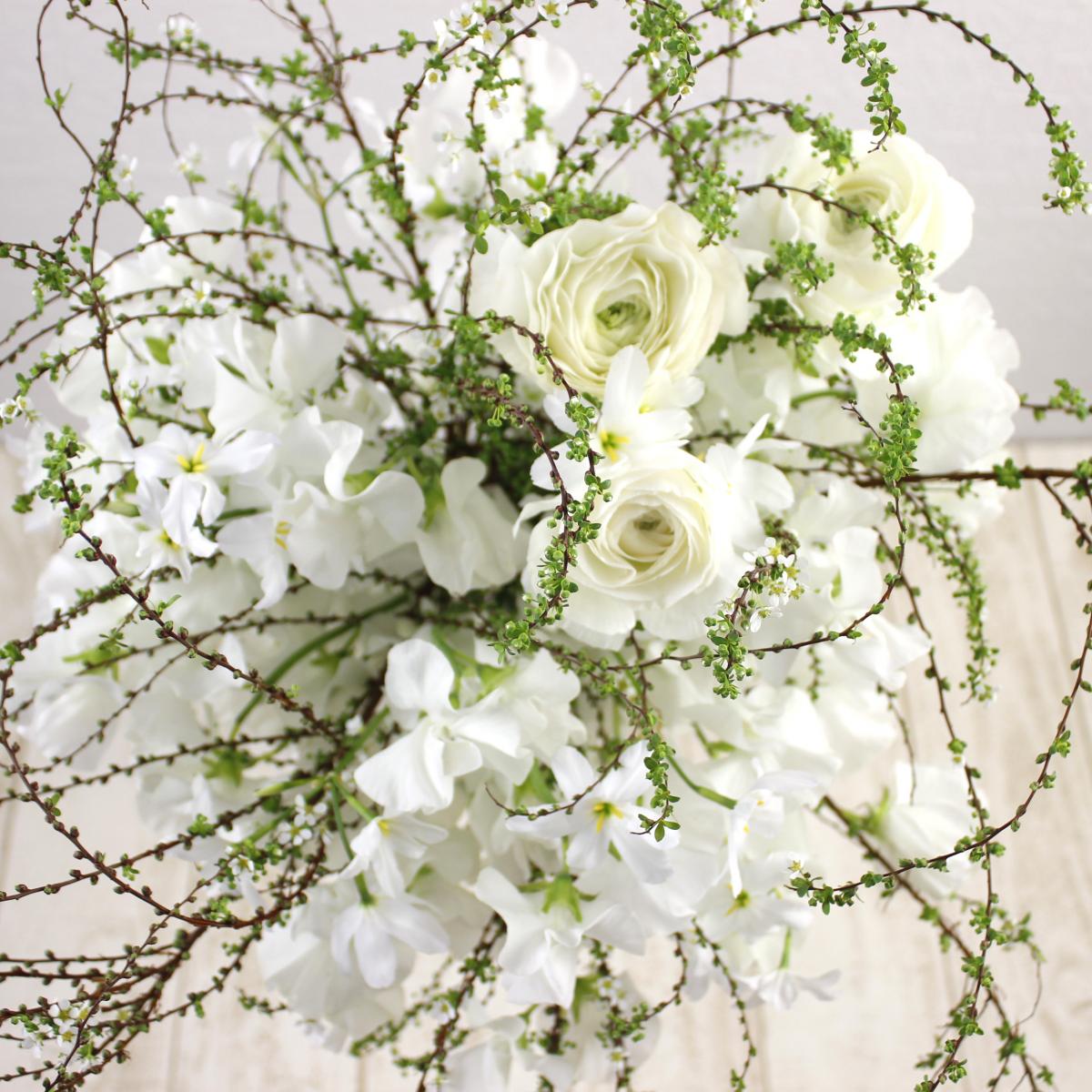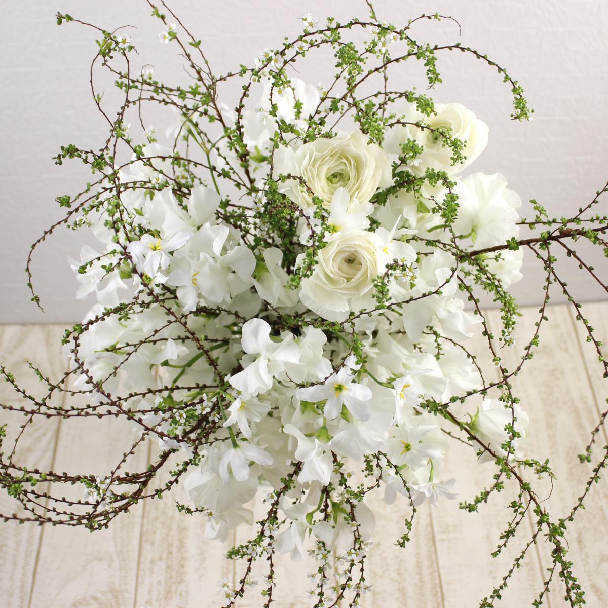 【生花】季節のフラワーセット:スイトピーとユキヤナギの白いブーケなら花材通販【はなどんやアソシエ】におまかせ!即日発送、送料無料、ポイント還元も。個人法人問わず花材が仕入れられるネット通販です。