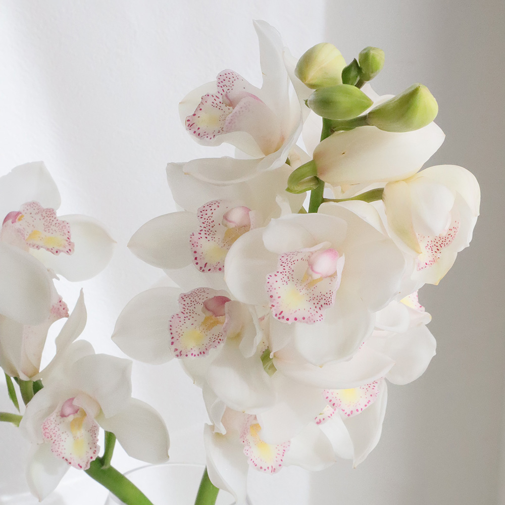 【生花】シンビジューム(白系※)L-2L【FJ】品種おまかせなら花材通販【はなどんやアソシエ】におまかせ!即日発送、送料無料、ポイント還元も。個人法人問わず花材が仕入れられるネット通販です。