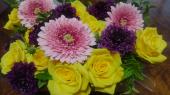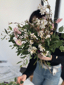 吉野桜とスカビオサとパンジーのbouquetレッスン -