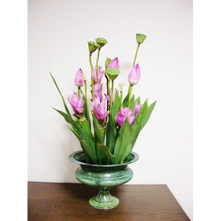 丸い花器と蓮で盛夏の花くばり -