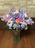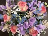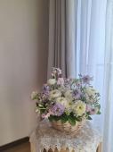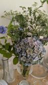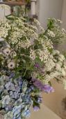 盛花の小花に紫のアスターを添えて -